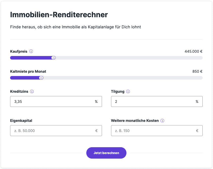 https://www.finanztip.de/baufinanzierung/immobilie-kapitalanlage/ (Zugriff: 18.11.2025). - Zinsen-berechnen.de (2025): Rendite einer Immobilien-Kapitalanlage berechnen. Verfügbar unter: